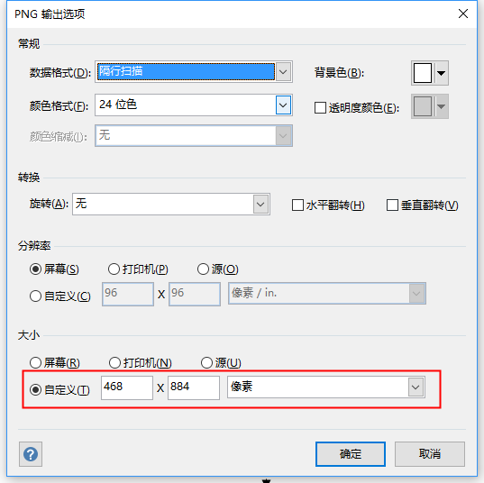 导出 PNG 时,填好保存位置和文件名之后,会弹出一个「PNG 输出选项」,在其中调整大小即可。